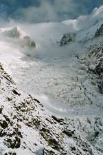 Mraky zmizely a do ledovce Dome zasvítilo sluníčko. Čerstvý sníh udělal své. Vše bylo krásně bílé.