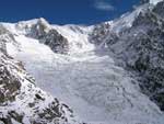 | Ranní pohled na ledovec Dome, který potřebujeme zdolat. |