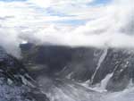 Pohled do údolí, kde se ještě stále válely mraky.