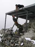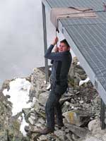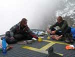 Vrtulník s Petrem odletěl a Honza se sluní na heliportu, z kterého jsme pracně odházeli přes 30 cm sněhu.