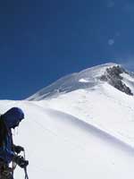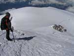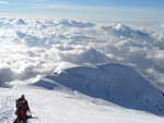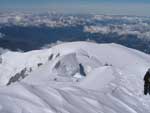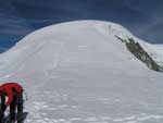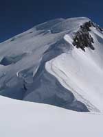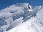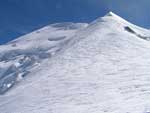 | Mont Blanc v 7:24. Jsme na svahu Dome du Gouter, který máme po levé ruce. |