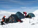 Tečky v sedle nad malou skalkou v levé části fota jsou naše stany.