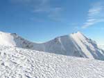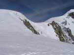 Pohled od místa stanování do sedla Col du Dome. Vallotka je vpravo.