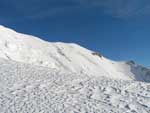 Foto z Vallotky na severní svah Blanku. Po ledovci vzádu se chodí na Blank z Aiguille du Midi.